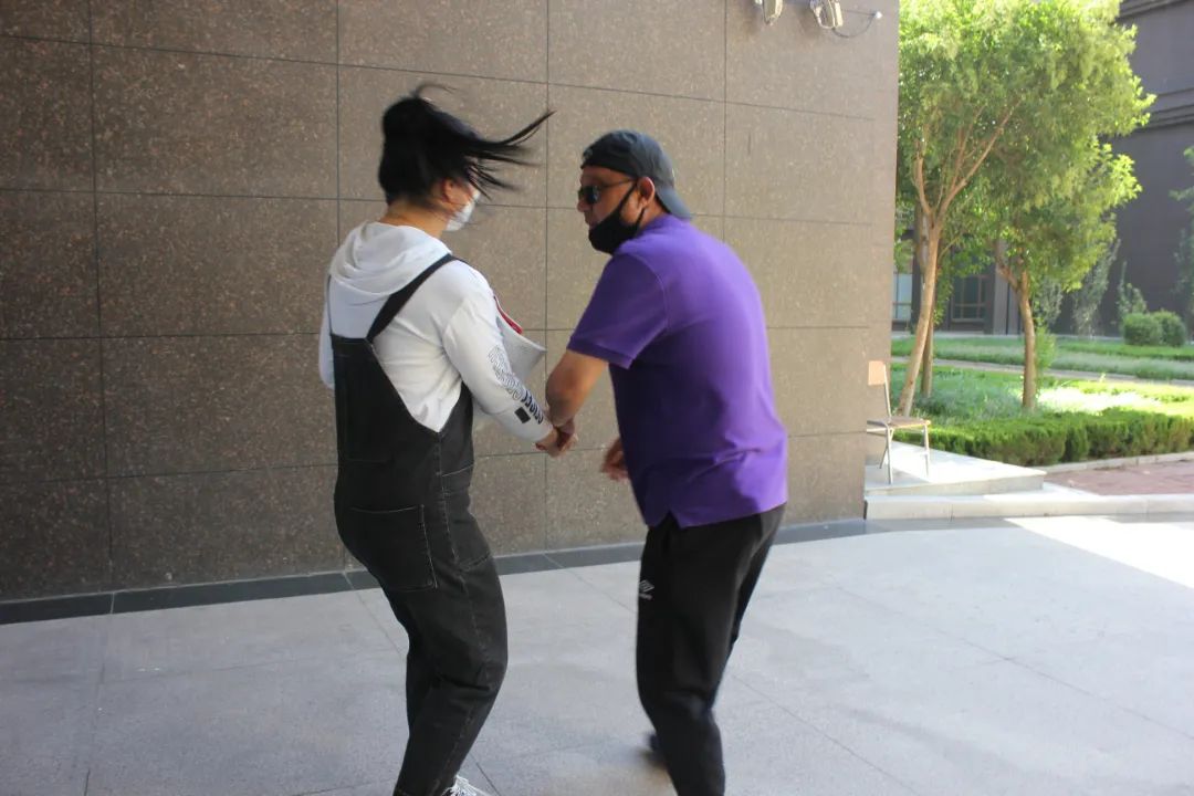 場(chǎng)景一:從一名風(fēng)華正茂的女學(xué)生在風(fēng)景秀麗的校園中讀書,突然被一名“歹徒”攔截調(diào)戲,正在女學(xué)生嚇得不知所措之際,兩位巡邏保安趕到此處,他們大聲怒斥“歹徒”趕緊住手。哪知歹徒不知好歹,惱羞成怒,竟然伸手打向保安。在這千鈞一發(fā)之際,保安隊(duì)長(zhǎng)帶領(lǐng)全體值班隊(duì)員聞?dòng)嵹s到現(xiàn)場(chǎng)支援,繼而合力將持械“歹徒”控制,女學(xué)生獲救。