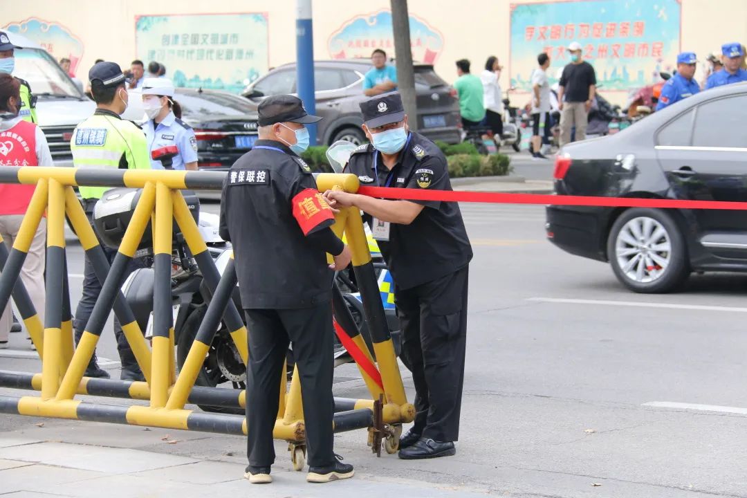 7:40,保安員積較協(xié)助公安機關(guān)在考場外劃設(shè)安全區(qū)域,拉設(shè)安全警戒帶,現(xiàn)場疏導(dǎo)群眾、讓考生順暢、安全入場。隊員們各司其職、履職盡責(zé),考點學(xué)子有序進入,校門口秩序井然。