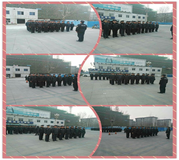 此次培訓,總經(jīng)理王新衛(wèi)精心組織、周密安排。一制定大練兵活動方案,成立以辦公室、督察科為主的督導小組。二領導帶頭,率先垂范。三統(tǒng)籌兼顧,工作訓練兩不誤。本著“干什么,學什么,缺什么,補什么”的原則進行。培訓內(nèi)容分保安理論知識與軍事訓練兩個方面。其中理論知識包括保安基礎知識、保安職責、權利和義務、保安相關的法律法規(guī)、時事政治、保安工作規(guī)范及工作技能、消防知識等內(nèi)容,軍事技能包括站軍姿、稍息、立正、齊步走等訓練課目。
