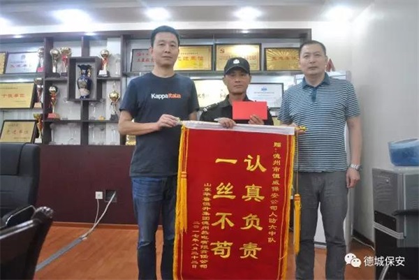 8月28日上午,山東華魯恒升集團德州熱電有限責任公司安保部段主任在派駐保安執(zhí)勤班班長王清池的陪同下,來到德州市恒威安保服務有限公司,感謝在8.17特大暴雨中及時排除重大險情的三名保安隊員。贈送“一絲不茍、認真負責”錦旗一面、表揚信一封。