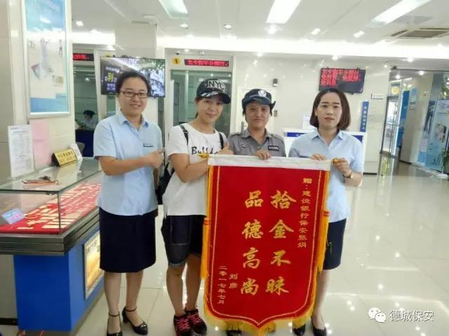7月10日,德州市市民劉彥女士將一面寫有“拾金不昧、高尚品德”的錦旗送給德州市恒威安保服務(wù)有限公司人防三大隊駐四新支行保安張娟處,由衷地感謝保安員張娟,對客戶認(rèn)真負(fù)責(zé),拾金不昧的高尚精神。