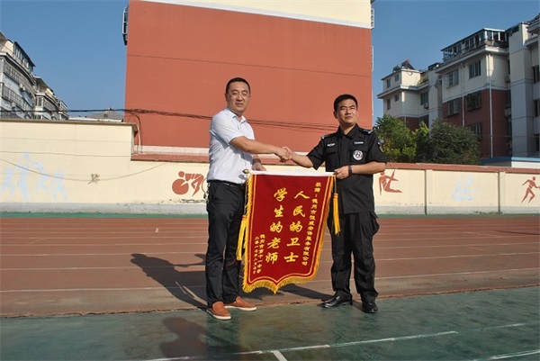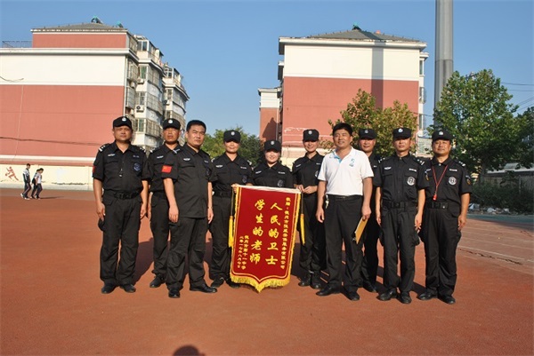 期間,教官們的嗓子喊啞了,學生們的腿累酸了、臉曬黑了,但很少有人掉隊和叫苦叫累。公司副總經理、人防二大隊大隊長王洪林多次到軍訓學??赐繂栜娪柦坦?。并受邀參加了十一中、七中的軍訓成果展示點驗活動。十一中校長親自向公司贈送了“人民的衛(wèi)士,學生的老師”錦旗一面,感謝公司的鼎力協助和教官們的辛勤付出。并對公司軍訓教官過硬的軍事素質給予高度的評價。