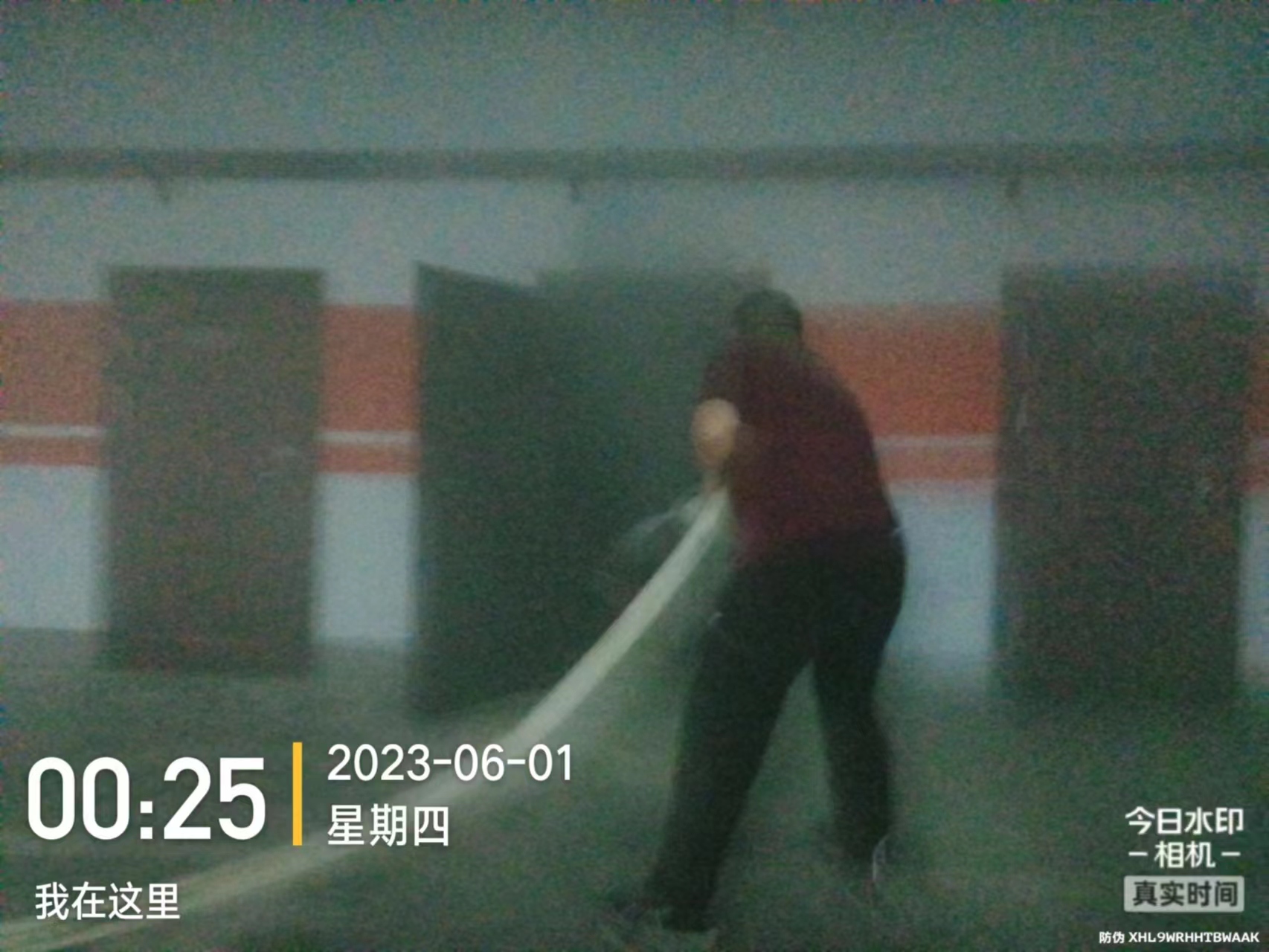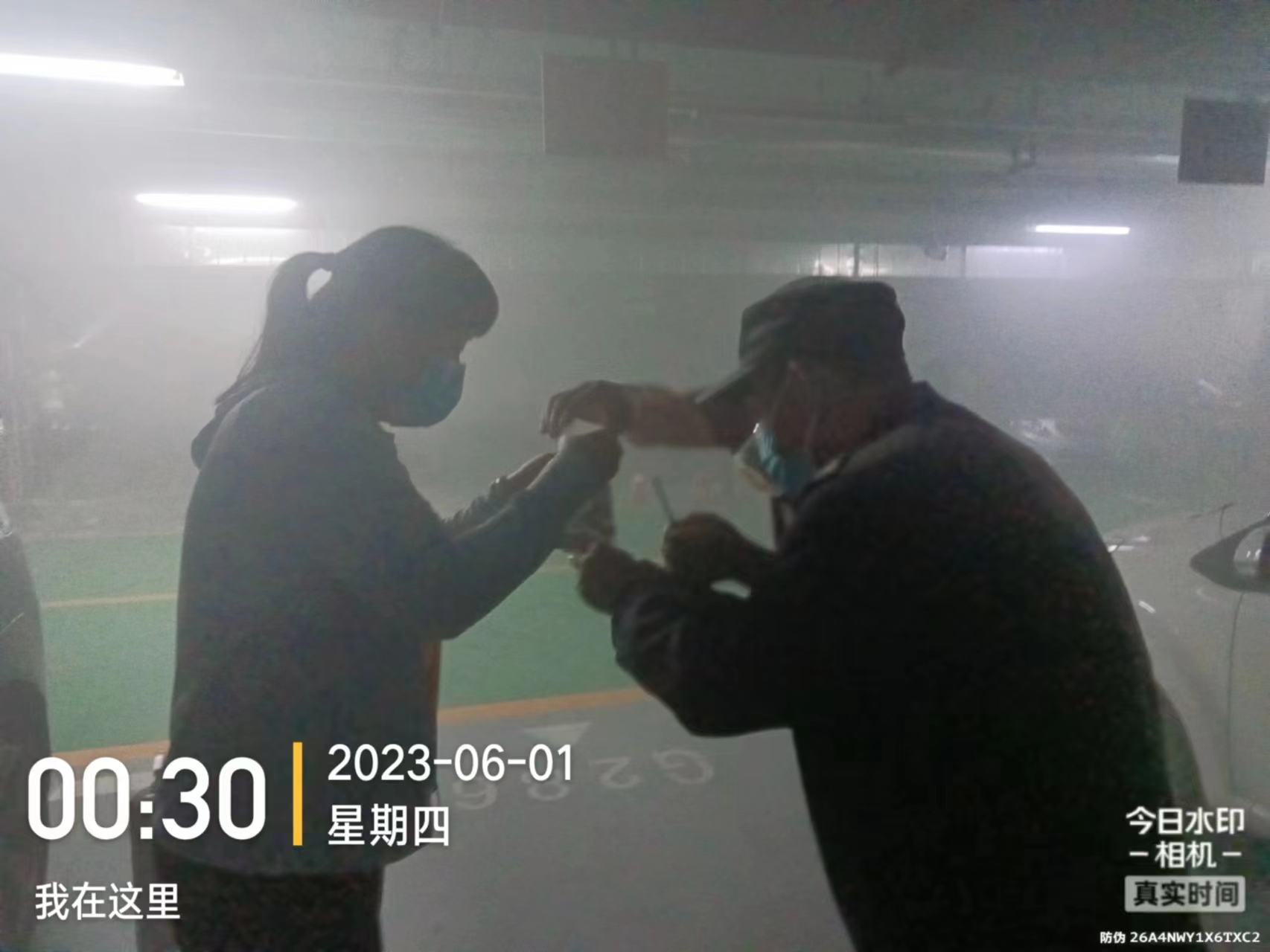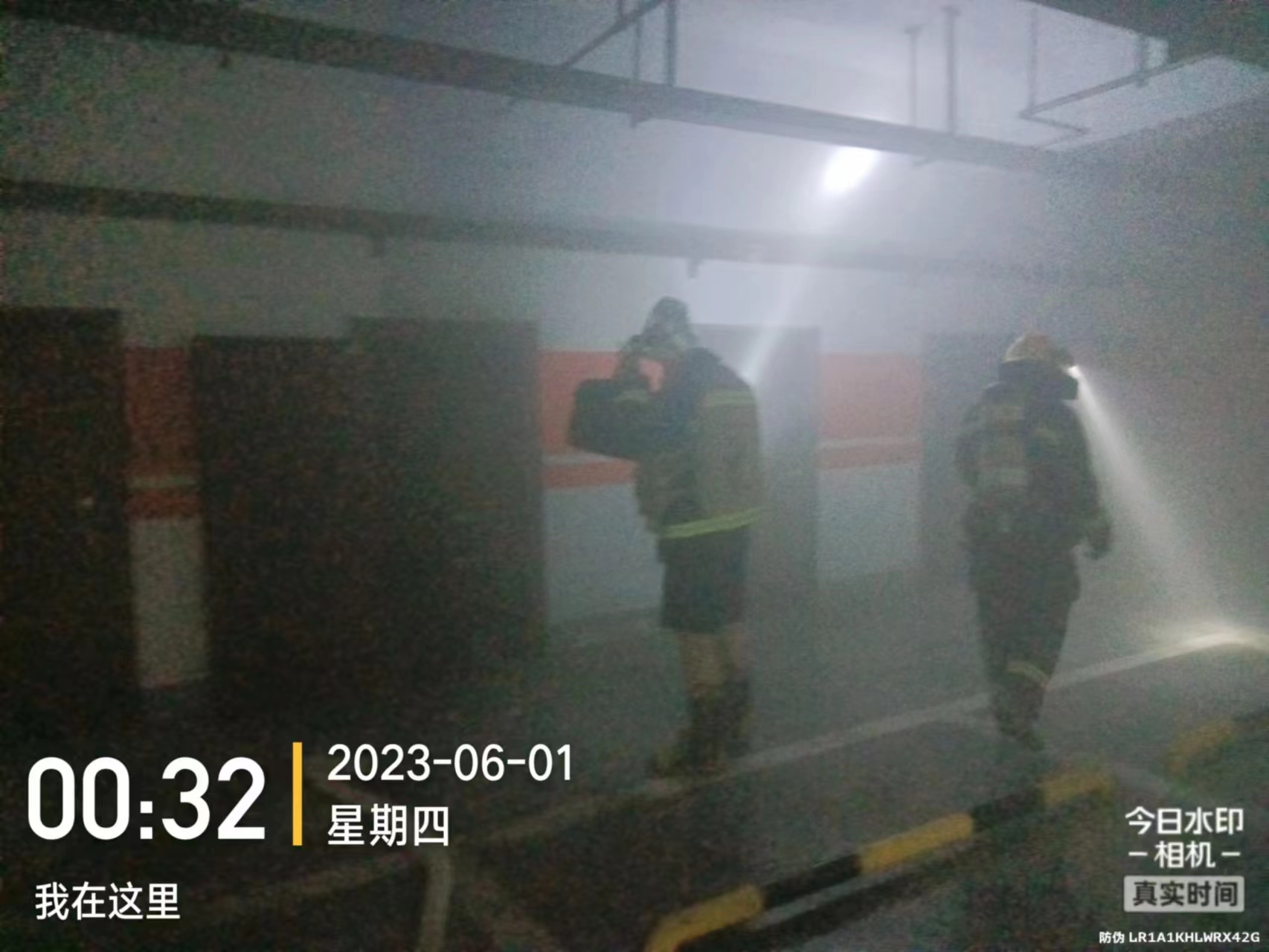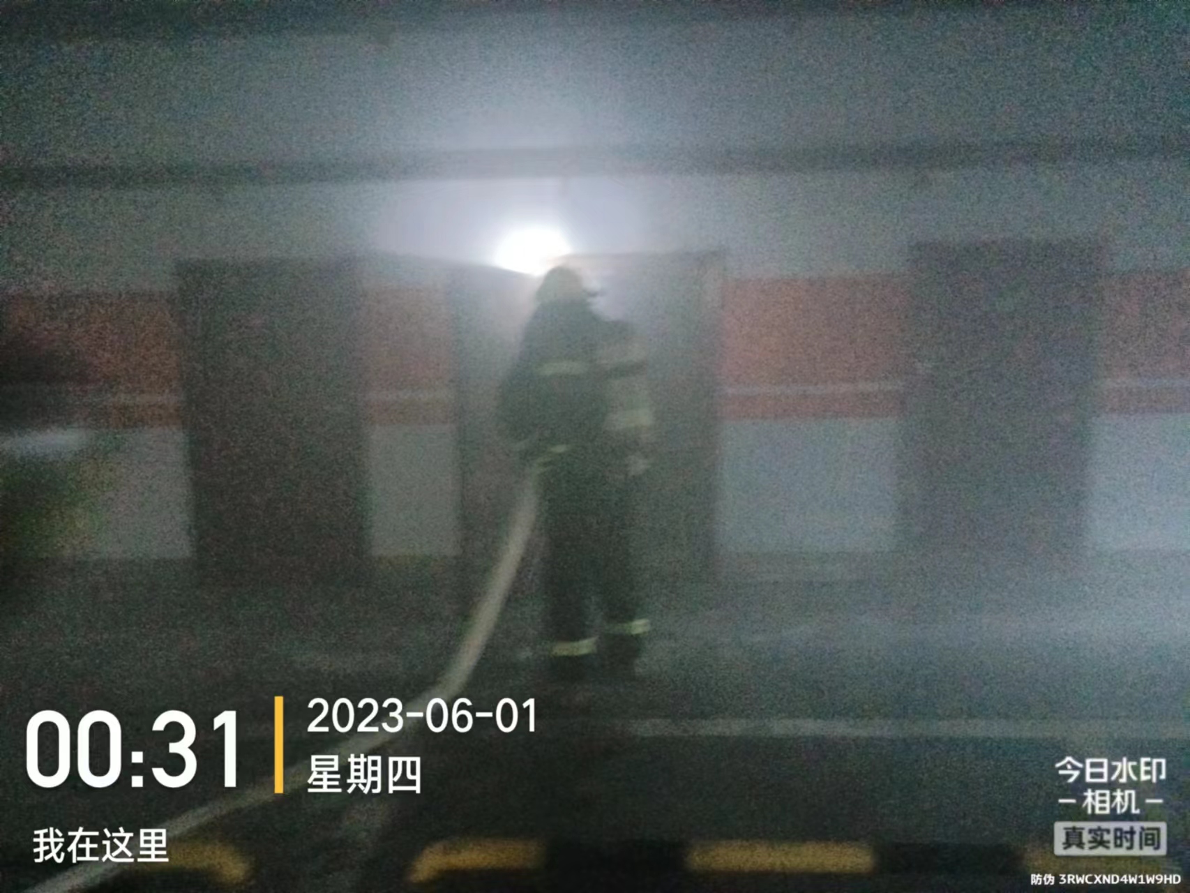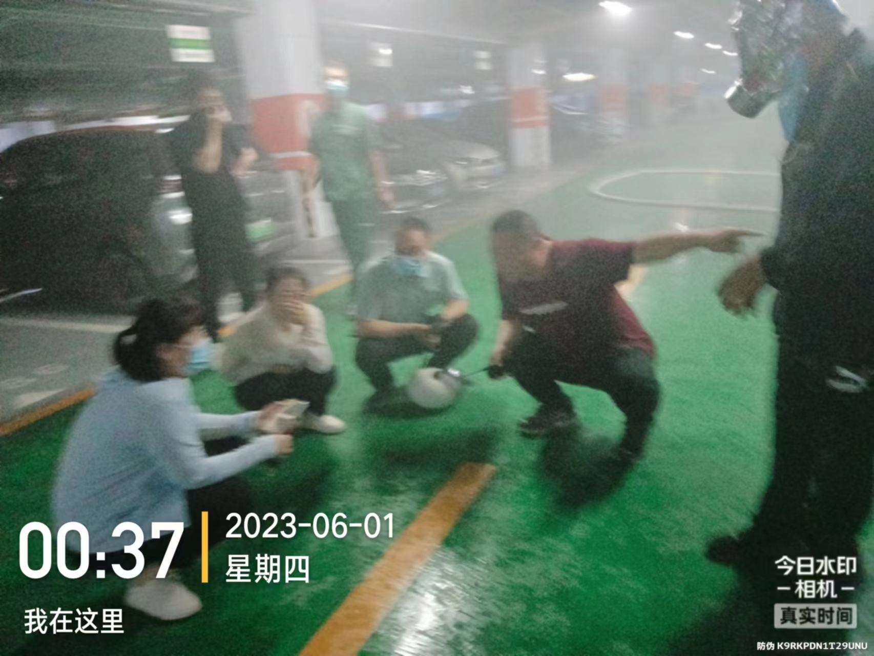 5月31日23點47分,星凱小區(qū)消防監(jiān)控中心火災報警主機接到二期13號樓車庫儲藏間C1316火災探測器報火警,值班員崔會林、于士峰第一時間用對講機呼叫巡邏崗張士剛,告知其立即到前往查看,張士剛發(fā)現(xiàn)C1316儲藏間冒出濃煙并伴有燒焦味道,立刻將情況上報消防監(jiān)控中心,中隊長艾勇峰立即啟動消防應急預案、撥打119火警電話并向單位領導匯報,隨即帶領4名安保人員攜帶滅火器、防煙面具等消防設備趕往火災現(xiàn)場,第一時間切斷該儲藏間電源并通知附近車位業(yè)主轉移車輛,隨即打開儲藏室,佩戴防煙面具進入,用滅火器、水進行滅火,待到消防人員趕到時,明火已滅,火情得到控制,后經(jīng)消防隊員現(xiàn)場確認,火災警情解除,但按消防要求設置觀察崗值班兩小時防止火災復燃。