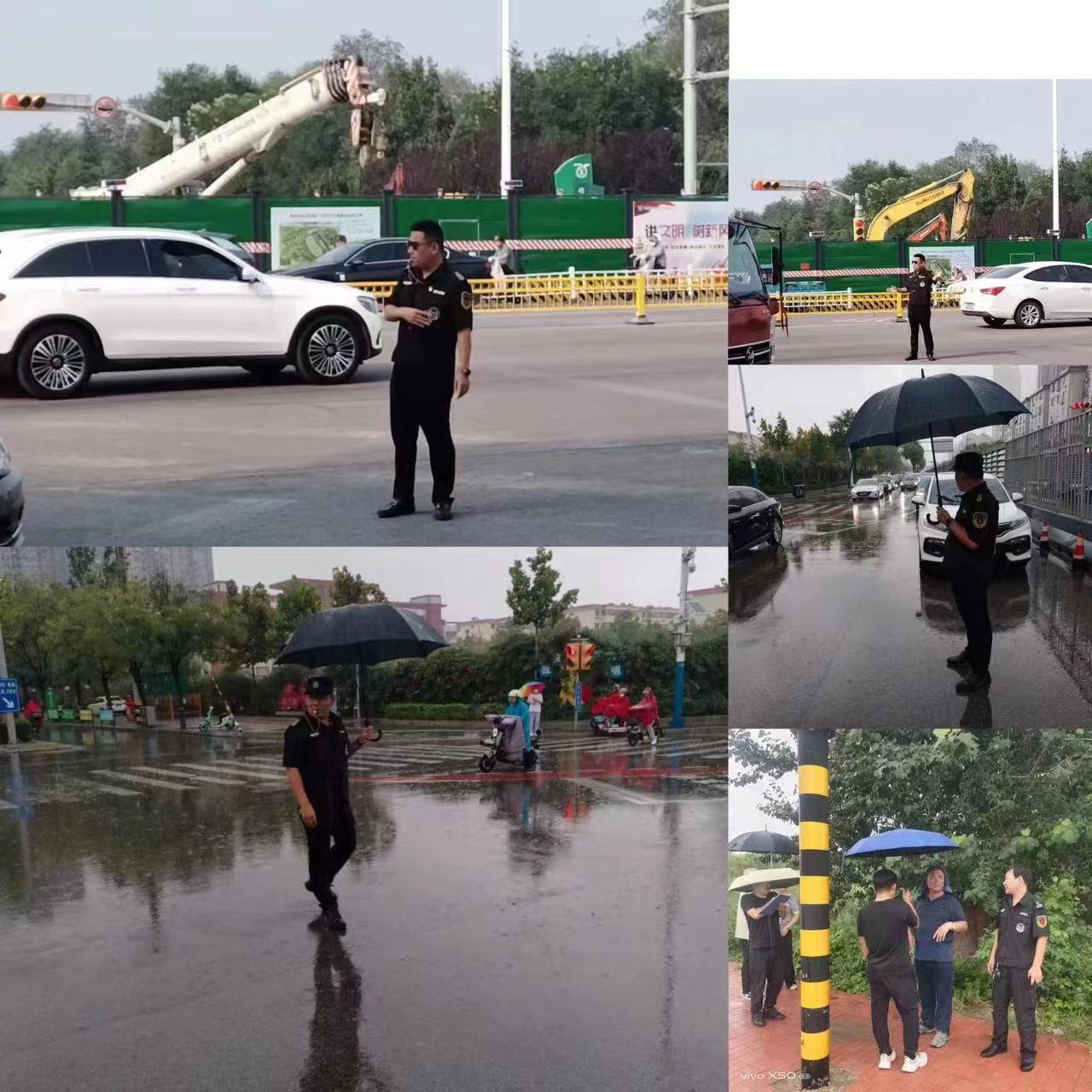 一公司承接多處道路交通協(xié)管勤務且點位較為分散,7月28日下午,副總經(jīng)理王洪林深入勤務現(xiàn)場,與交警部門積極對接,對執(zhí)勤點位安全隱患進行排查,并要求各分管隊長務必高度重視,對存在安全隱患的警示牌,迅速對接施工方對其進行加固,以免發(fā)生事故,同時叮囑隊員們在做好自身防護的前提下,嚴格落實好各項防汛舉措,確保道路安全暢通。由于城區(qū)突降大雨,加之正值下班高峰時段,車流量不斷加大,車輛通行緩慢,王洪林也加入交通疏導隊伍,與隊員們一起冒雨疏導過往車輛,緩解交通通行壓力。