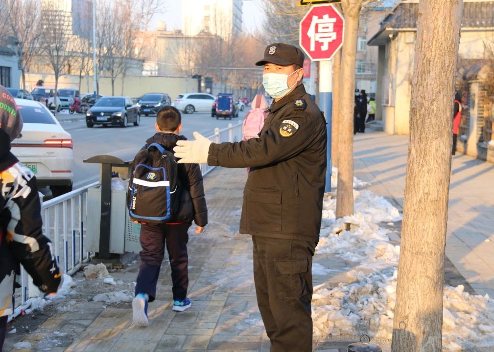開學當天,各學校執(zhí)勤班組保安員嚴格落實“護學崗”制度,采取定人、定時、定崗、定責勤務(wù)機制,始終保持高度重視和警惕性,并結(jié)合校園實際,合理安排護學力量,加強交通疏導與秩序維護,并配合學校做好人員進出安全檢查,為學生、家長的安全出行營造良好的交通環(huán)境。