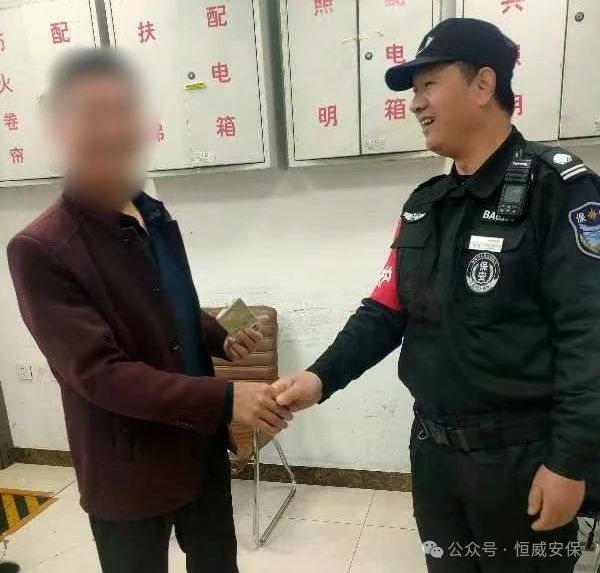 2024年4月15日上午9時(shí)許,正在山東大學(xué)齊魯醫(yī)院德州醫(yī)院執(zhí)勤巡邏的保安員祝少國(guó),在醫(yī)院門(mén)口的吸煙處發(fā)現(xiàn)一部手機(jī),他立即告知在崗隊(duì)員一起尋找失主,經(jīng)調(diào)取監(jiān)控,發(fā)現(xiàn)失主將手機(jī)遺忘在吸煙處,向醫(yī)院外走了,由于手機(jī)設(shè)有密碼,無(wú)法聯(lián)系到失主,保安員祝少國(guó)便將手機(jī)放在值班室,等待失主來(lái)電,終于在9點(diǎn)半左右,失主打來(lái)電話,祝少國(guó)向失主說(shuō)明情況,失主匆匆趕來(lái)。手機(jī)解鎖后,祝少國(guó)將手機(jī)歸還失主,失主隨即掏出300元錢(qián)遞給祝少國(guó)以示感謝。但被祝師傅直接拒絕并表示:“分內(nèi)之事,這是我們應(yīng)該做的?!笔е鲗?duì)祝少國(guó)伸出大拇指,連聲道謝,咱們保安員真棒!
