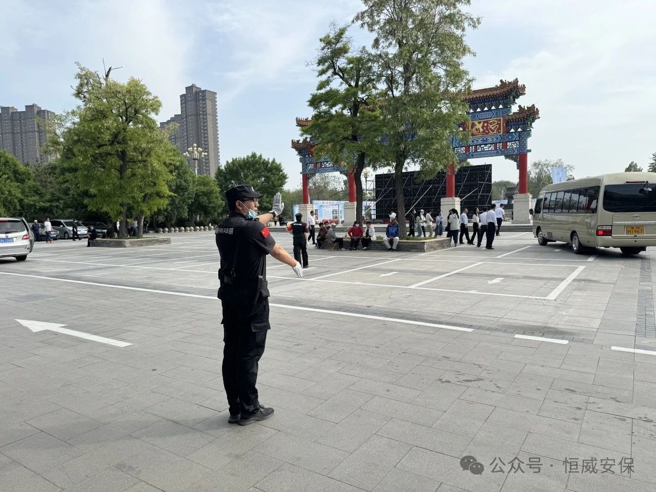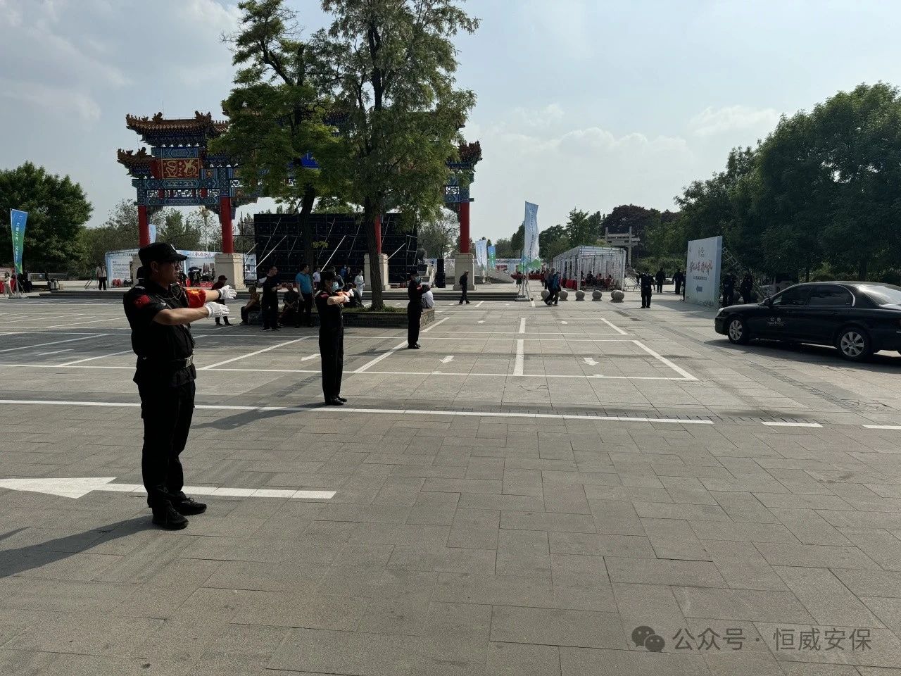 此次安保任務(wù),我司主要負(fù)責(zé)主舞臺(tái)以北區(qū)域,由于參會(huì)人員、車輛眾多,需安排專人引導(dǎo)車輛進(jìn)場(chǎng)有序停放,疏導(dǎo)人員。從早8點(diǎn)至晚10點(diǎn),兩天的勤務(wù)值守,恒威安保人一直“釘”在現(xiàn)場(chǎng),引導(dǎo)車輛停放、疏散人群、擺放車輛,整齊的著裝、規(guī)范的手勢(shì)、忙碌的身影受到在場(chǎng)群眾和客戶單位的廣泛好評(píng),再次擦亮了恒威安保品牌底色,贏得了群眾良好口碑。