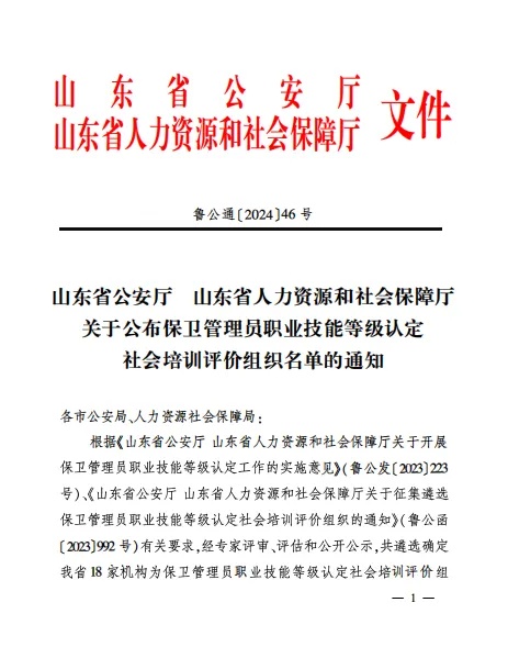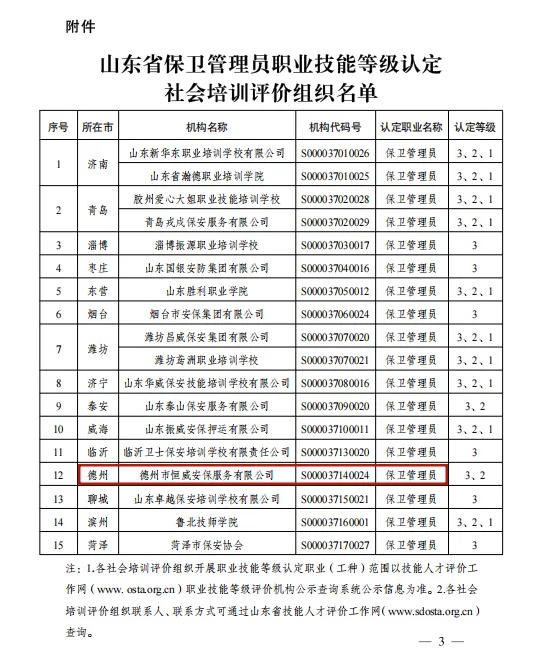 【技能等級(jí)認(rèn)定】德州市唯一!公司獲批山東省保衛(wèi)管理員職業(yè)技能等級(jí)認(rèn)定社會(huì)培訓(xùn)評(píng)價(jià)機(jī)構(gòu)!