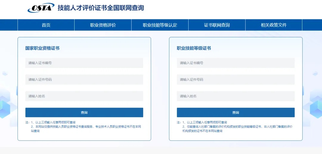 技能人才評(píng)價(jià)證書全國聯(lián)網(wǎng)查詢 http://zscx.osta.org.cn/