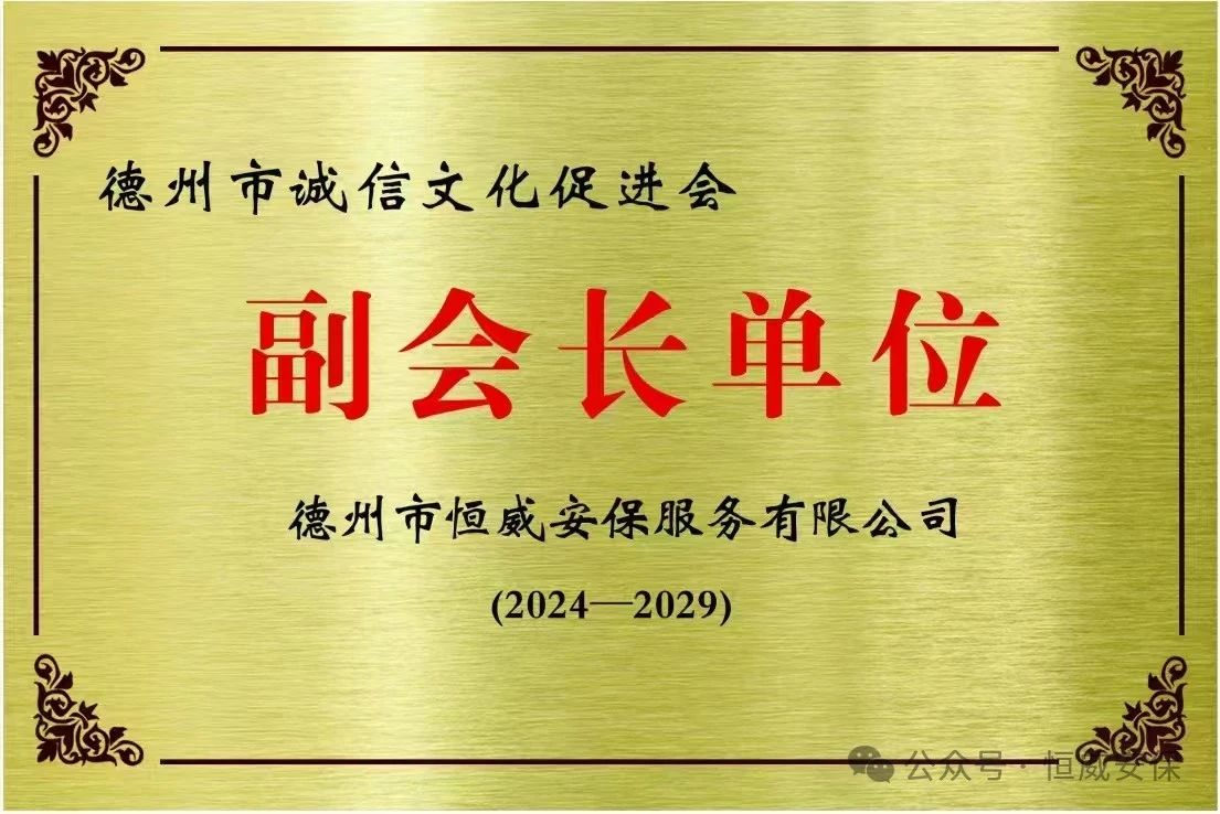 近日,德州市恒威安保服務(wù)有限公司正式當(dāng)選為德州市誠(chéng)信文化促進(jìn)會(huì)副會(huì)長(zhǎng)單位,這一榮譽(yù)不僅彰顯了恒威安保在誠(chéng)信建設(shè)方面的卓越成就,也為其未來(lái)的發(fā)展注入了新的動(dòng)力。