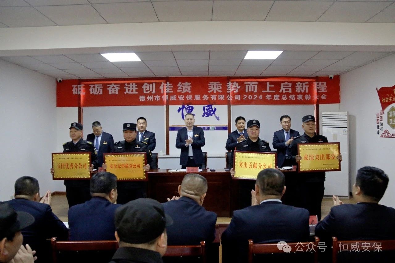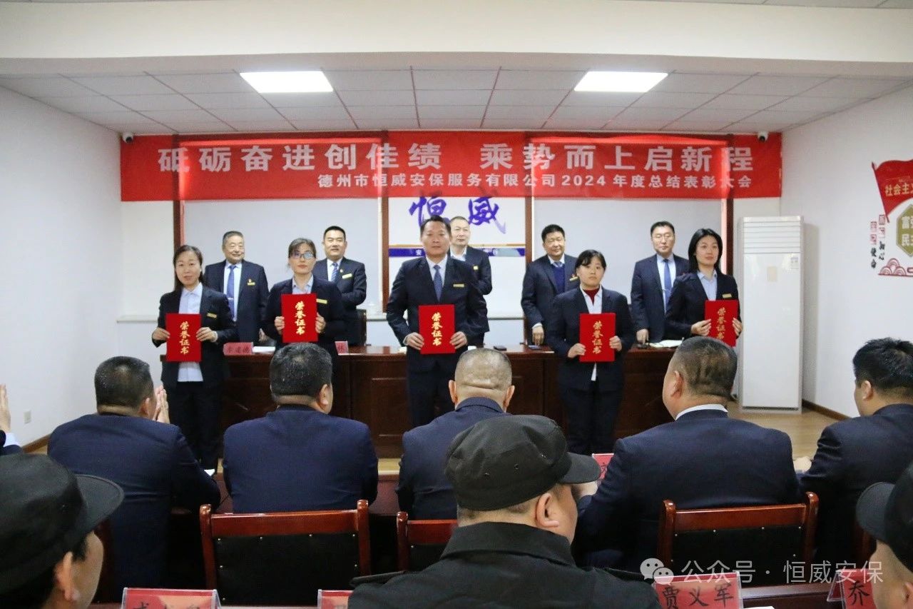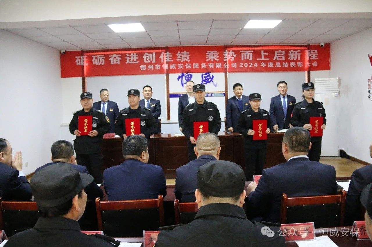 為表彰先進(jìn)、激勵(lì)斗志,總結(jié)成績(jī)、展望未來,2025年2月19日上午,德州市恒威安保服務(wù)有限公司召開2024年度總結(jié)表彰大會(huì),公司領(lǐng)導(dǎo)、各級(jí)管理人員以及獲得表彰的先進(jìn)集體代表、優(yōu)秀管理者、優(yōu)秀班長(zhǎng)、優(yōu)秀員工代表共60余人參加大會(huì),會(huì)議由公司副總經(jīng)理張玉濤主持。