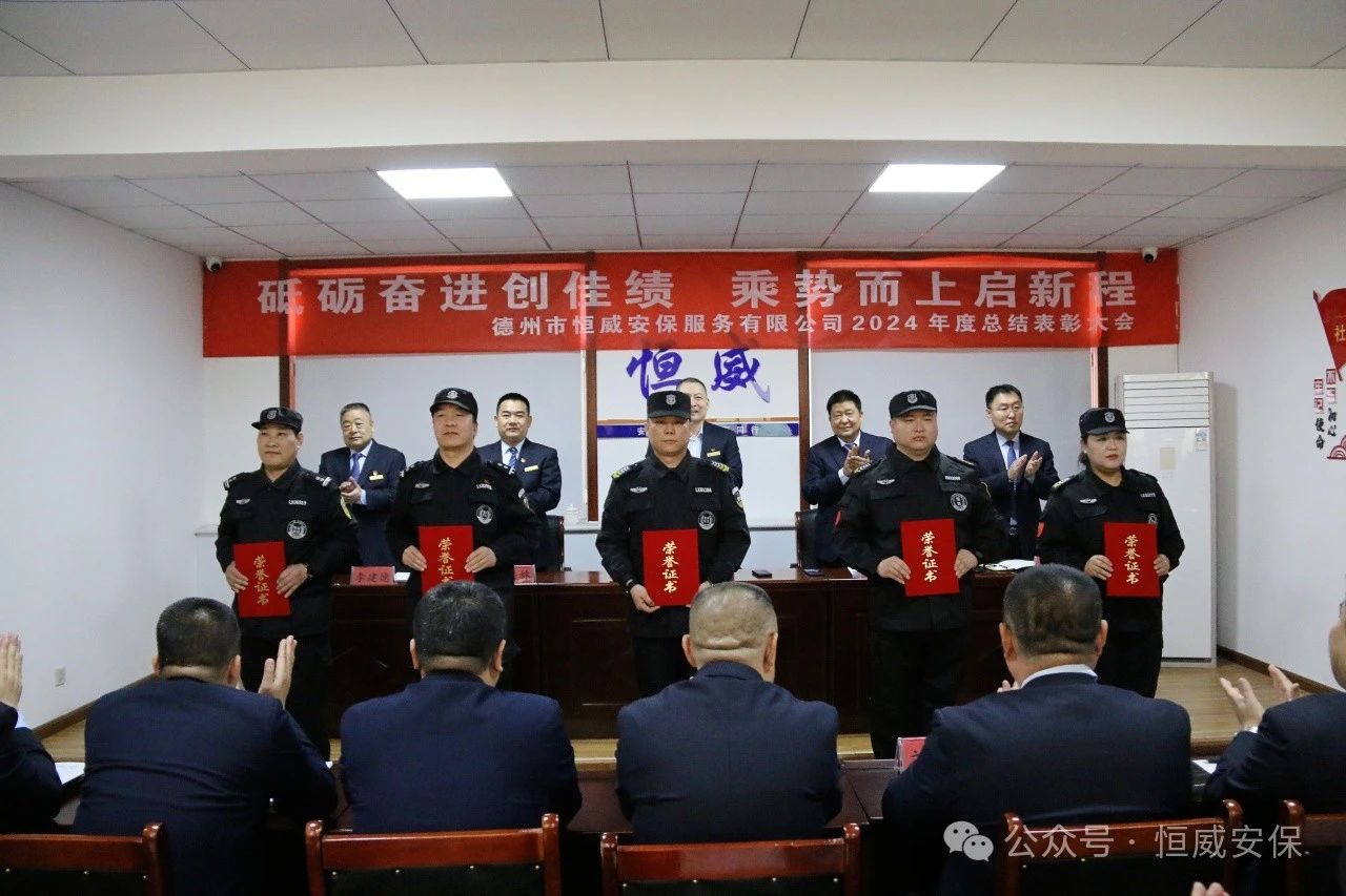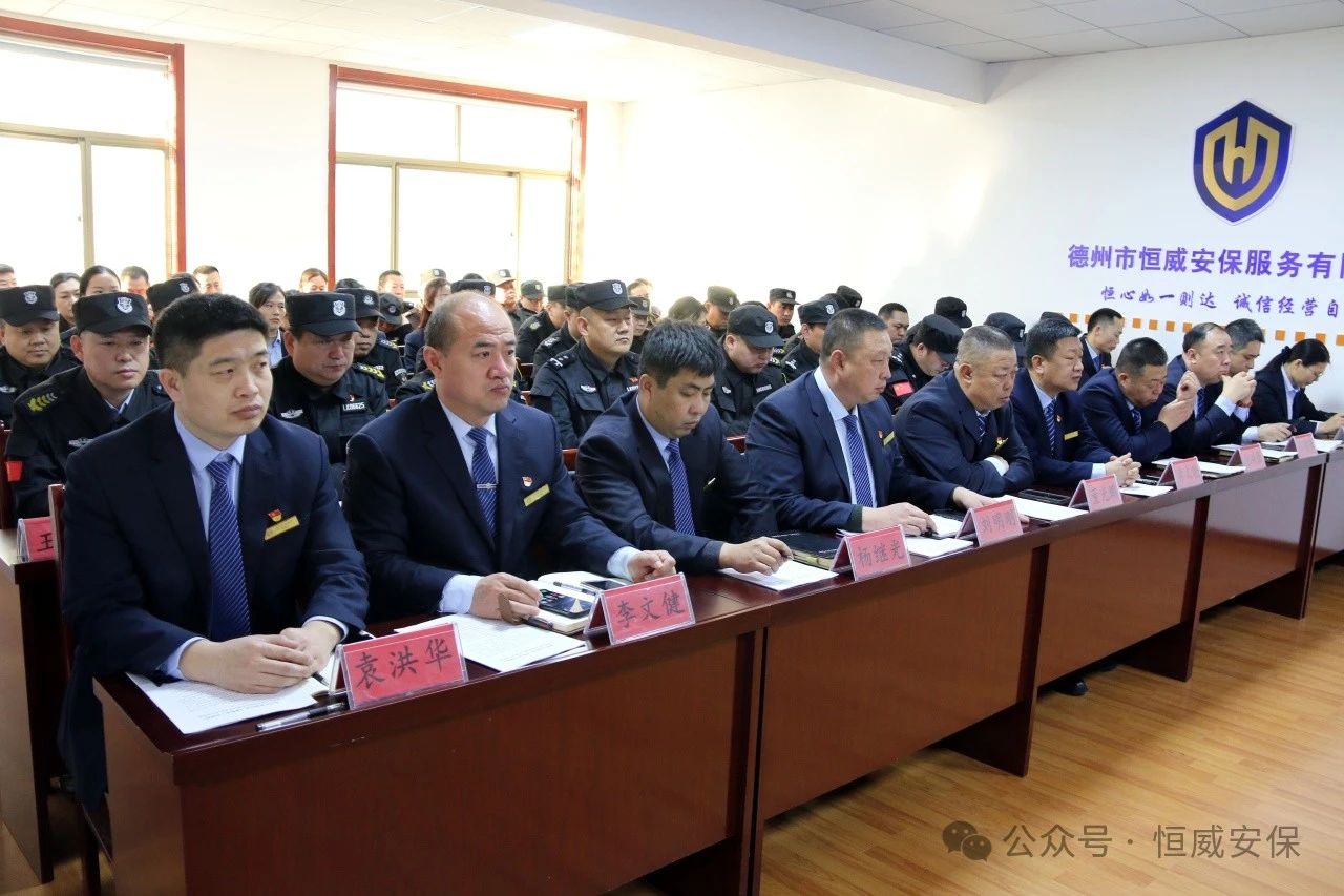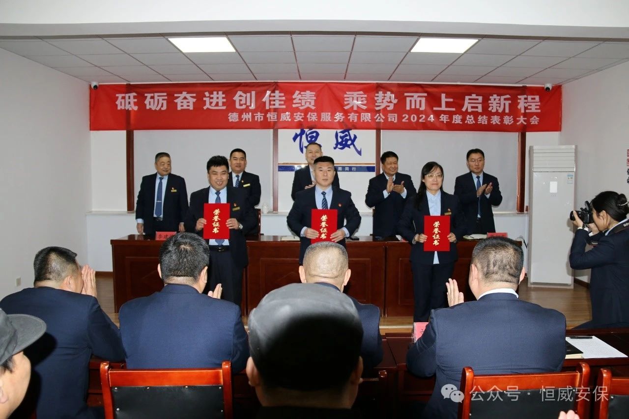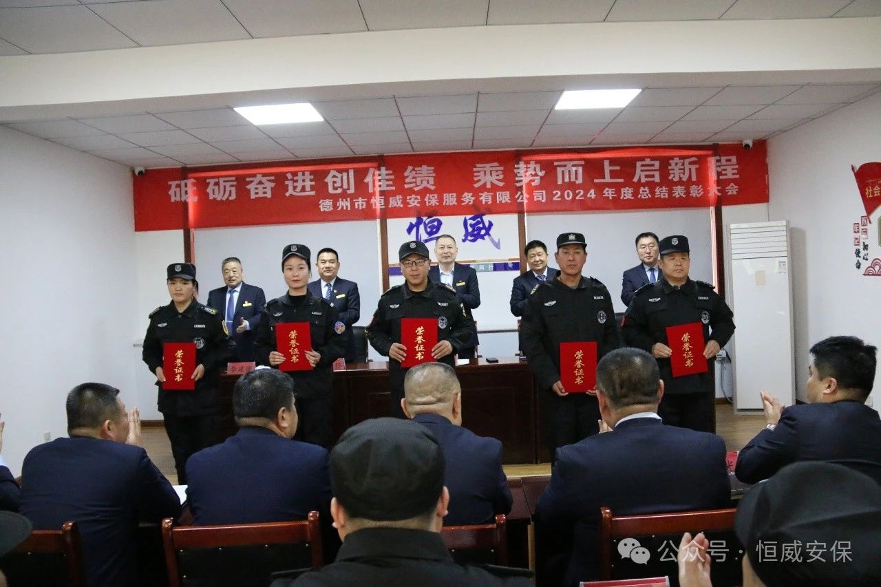 為表彰先進(jìn)、激勵(lì)斗志,總結(jié)成績(jī)、展望未來,2025年2月19日上午,德州市恒威安保服務(wù)有限公司召開2024年度總結(jié)表彰大會(huì),公司領(lǐng)導(dǎo)、各級(jí)管理人員以及獲得表彰的先進(jìn)集體代表、優(yōu)秀管理者、優(yōu)秀班長(zhǎng)、優(yōu)秀員工代表共60余人參加大會(huì),會(huì)議由公司副總經(jīng)理張玉濤主持。
