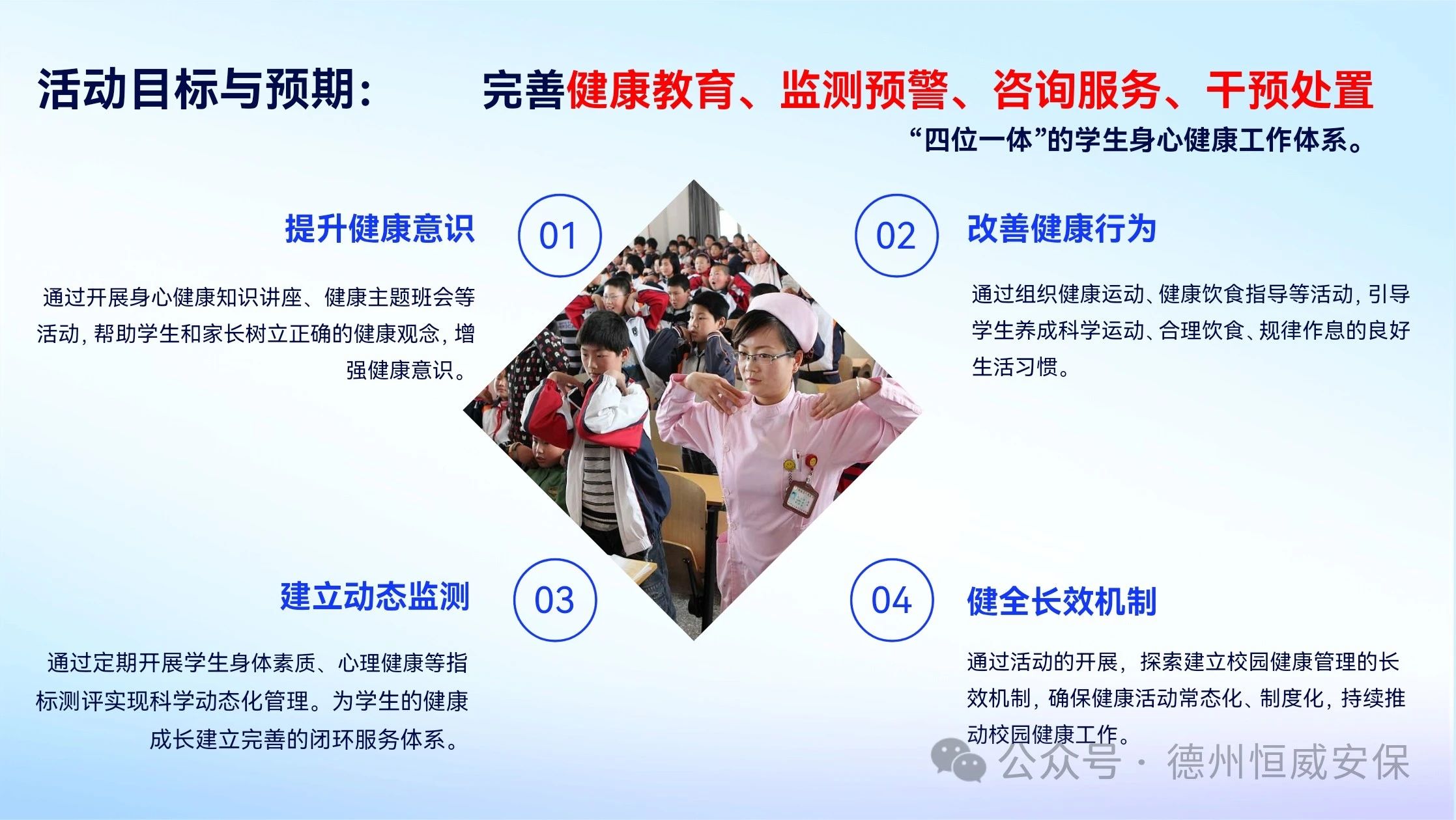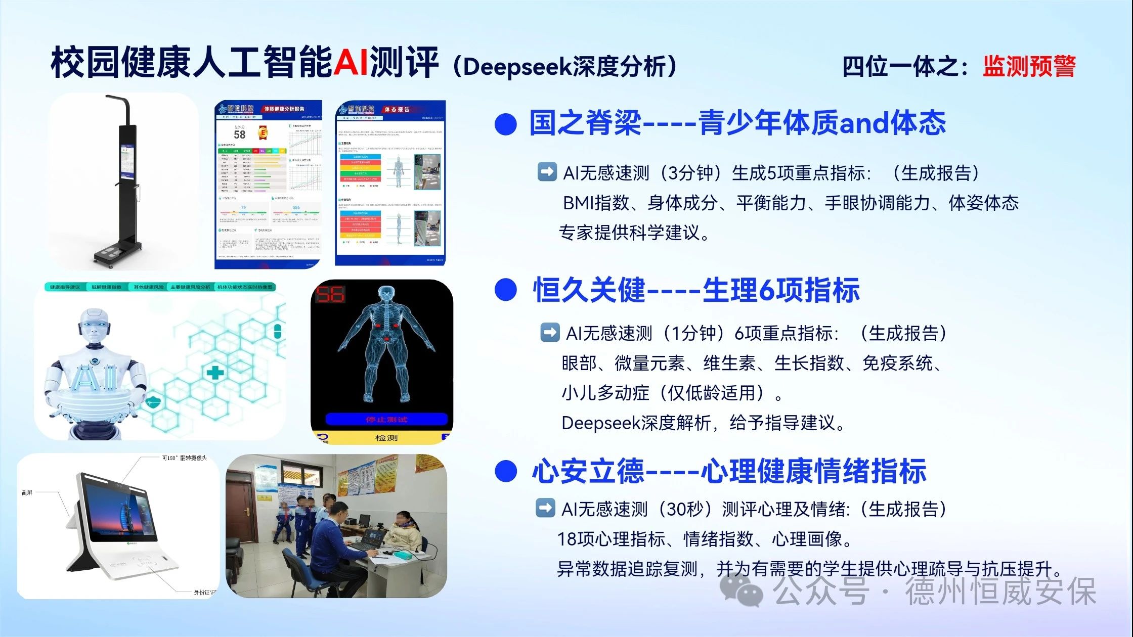 會(huì)上,公司恒心AI心理測(cè)評(píng)中心負(fù)責(zé)人趙海峰,就主題為“恒久關(guān)健·心安立德”的“平安·健康校園行”活動(dòng)方案進(jìn)行了詳細(xì)闡述。方案明確提出,通過AI科技賦能學(xué)生身心健康測(cè)評(píng)與提升工作,助力完善“四位一體”學(xué)生身心健康工作體系。此外,活動(dòng)還精心規(guī)劃了校園火災(zāi)逃生演練、地震避險(xiǎn)演練以及升級(jí)版校園防暴恐應(yīng)急演練等一系列大型演練項(xiàng)目。