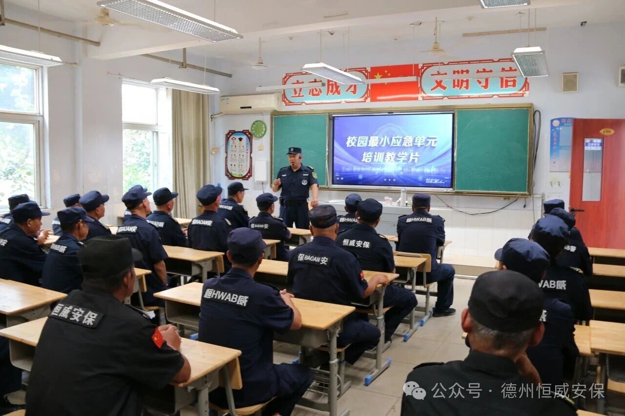 為全面提升校園安全防范水平,強(qiáng)化保安隊(duì)伍應(yīng)急處突能力,切實(shí)保障師生安全與校園穩(wěn)定,德州市恒威安保服務(wù)有限公司充分利用暑假時(shí)間窗口,于近期精心策劃并成功組織實(shí)施了針對(duì)城區(qū)50余所中小學(xué)、幼兒園校園保安員的最小應(yīng)急單元專題培訓(xùn)。本次培訓(xùn)分批次在十一中、十中萱蕙校區(qū)、五中、黃河涯中學(xué)等多個(gè)教學(xué)點(diǎn)有序開(kāi)展,旨在通過(guò)系統(tǒng)化、實(shí)戰(zhàn)化的專業(yè)訓(xùn)練,鍛造一支素質(zhì)過(guò)硬、技能精湛、反應(yīng)迅速的校園安保鐵軍,為新學(xué)期的平安校園建設(shè)筑牢堅(jiān)實(shí)根基。