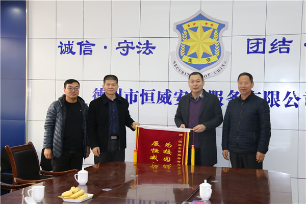 2018年11月30日上午, 德州學(xué)院保衛(wèi)處處長(zhǎng)王榮朝、副處長(zhǎng)李巖、治安科長(zhǎng)王鳳丹來(lái)我公司調(diào)研慰問并贈(zèng)送繡有“為校園保駕護(hù)航、展恒威安保風(fēng)采”錦旗一面。
