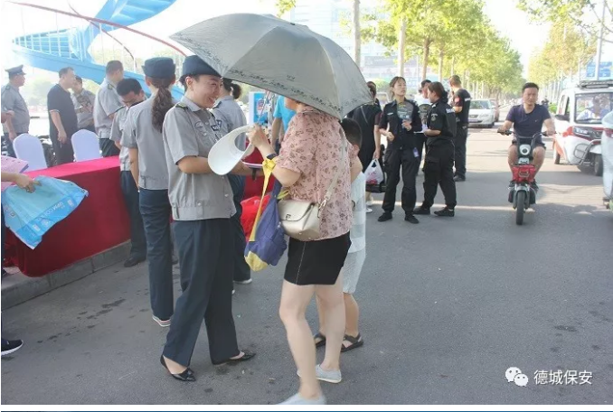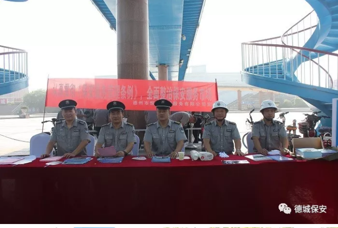 根據(jù)公安部、省公安廳統(tǒng)一部署要求,為認(rèn)真貫徹落實(shí)黨中央“不忘初心、牢記使命”主題教育活動(dòng)決策部署和公安部黨委關(guān)于開展“踐行新使他、忠誠保大慶”實(shí)踐活動(dòng)及各級領(lǐng)導(dǎo)要求,為國慶70周年慶祝營造良好的市場環(huán)境和社會(huì)氛圍,德州市恒威安保服務(wù)有限公司300余人于7月24日在中心廣場舉行“全市保安行業(yè)主題宣傳”活動(dòng)。